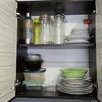 تم تجهيز هذه الشقة بمنطقة المطبخ الصغير المجهز.